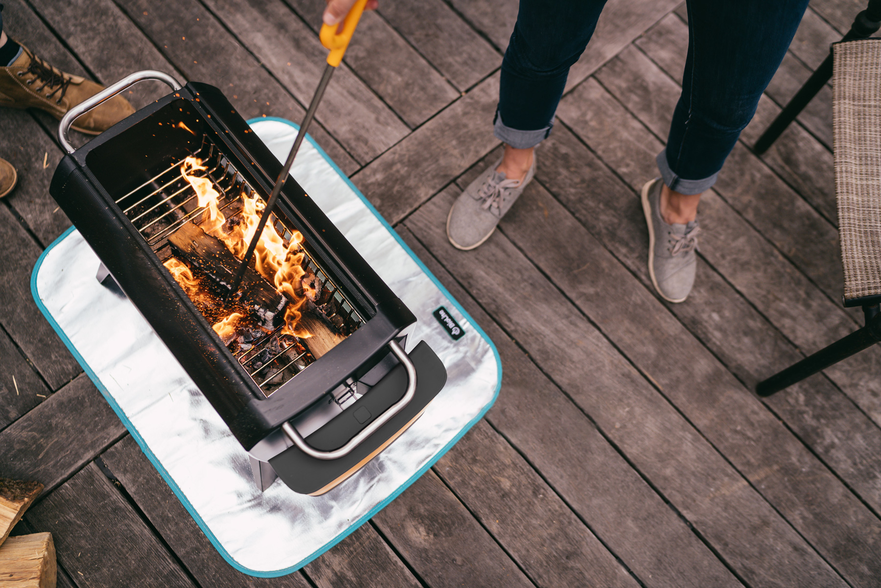 Biolite FirePit+. Enjoy the warmth, smell, crackle, and feel of a wood campfire, without any of the smoke. Our latest upgrade to the award-winning BioLite FirePit creates hyper-efficient flames with patented airflow technology and gives you a front-row seat to the magic thanks to the X-Ray mesh body. Lift the fuel rack and toss in charcoal to transform it from a fire pit to a portable hibachi-style grill, complete with included grill grate. Control the size of your flames manually or remotely with the free Bluetooth app.